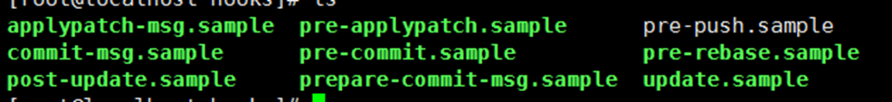 当某些重要事件发生时,Git 以调用自定义脚本,这些脚本叫挂钩。挂钩都被存储在 Git 目录下的hooks子目录中,即大部分项目中的.git/hooks。在Git 1.6版本之后,这些样本名都是以.sample结尾。在Git 1.6版本之前,这些样本名都是正确的,但这些样本不是可执行文件,需要修改权限。可以根据开发的需要更改钩子文件。